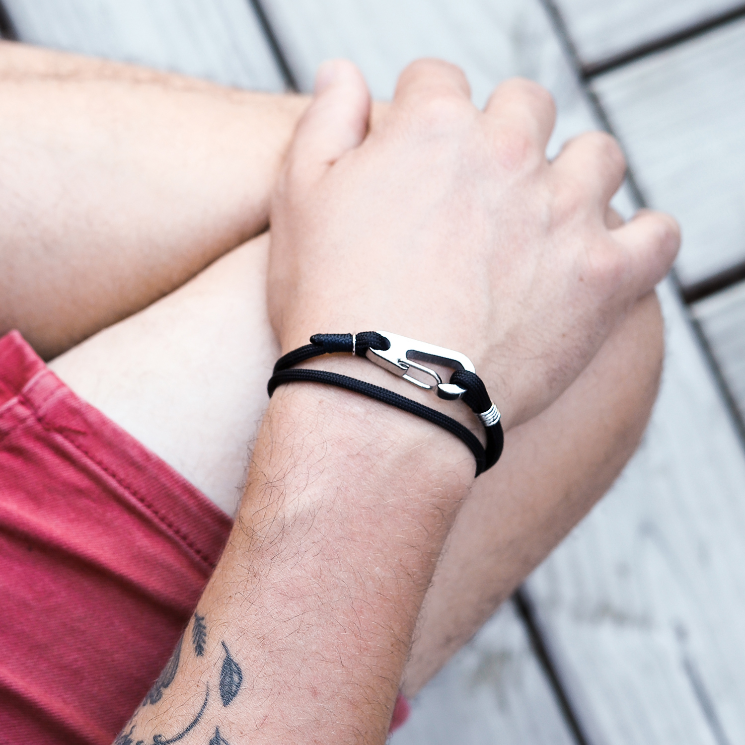 Ce bracelet, on l’a tressé à la main avec de la paracorde — ce cordage résistant qu’on utilise dans les situations extrêmes.