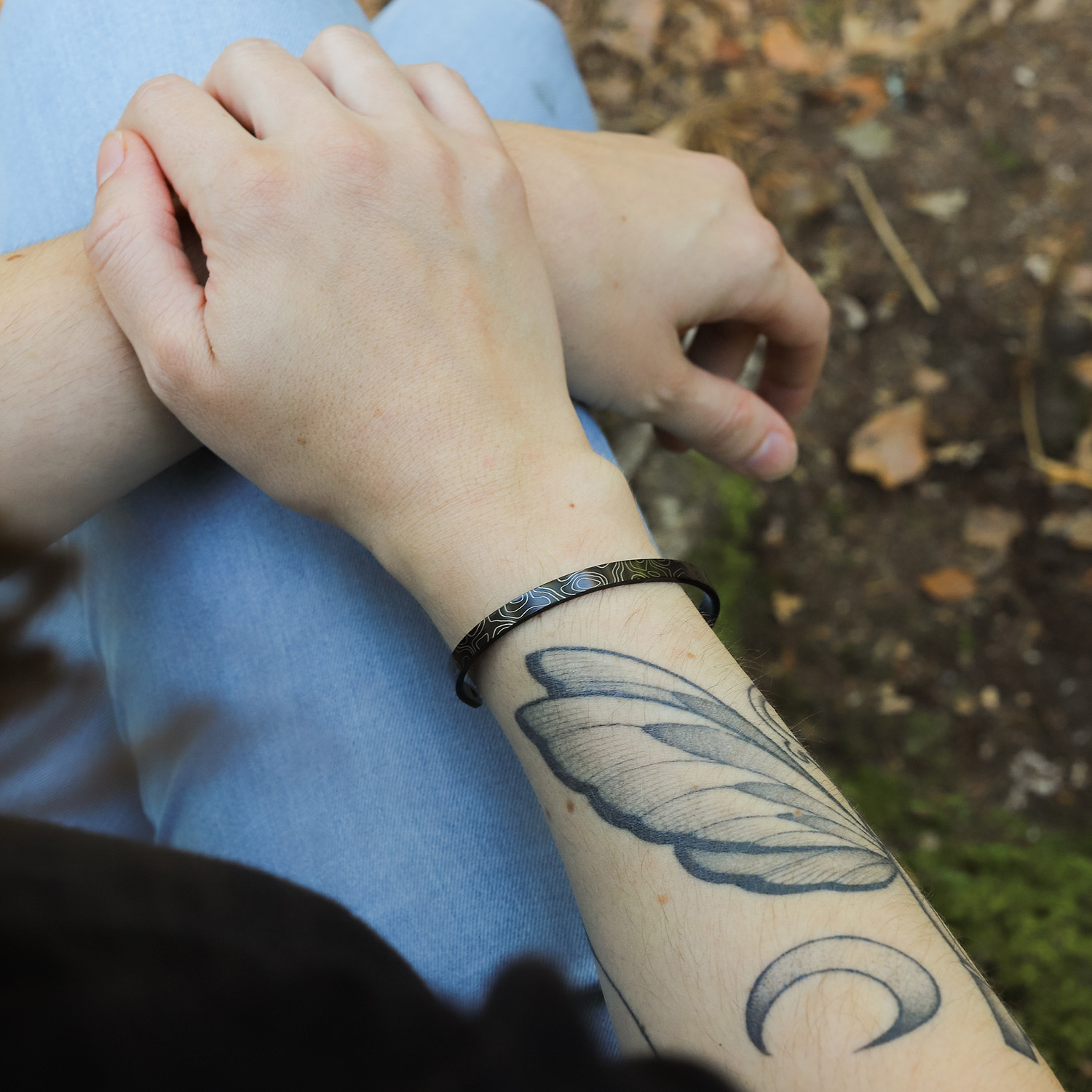 Un bracelet féminin inspiré par la montagne et les cartes topographiques